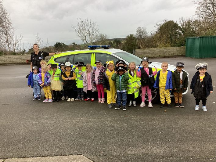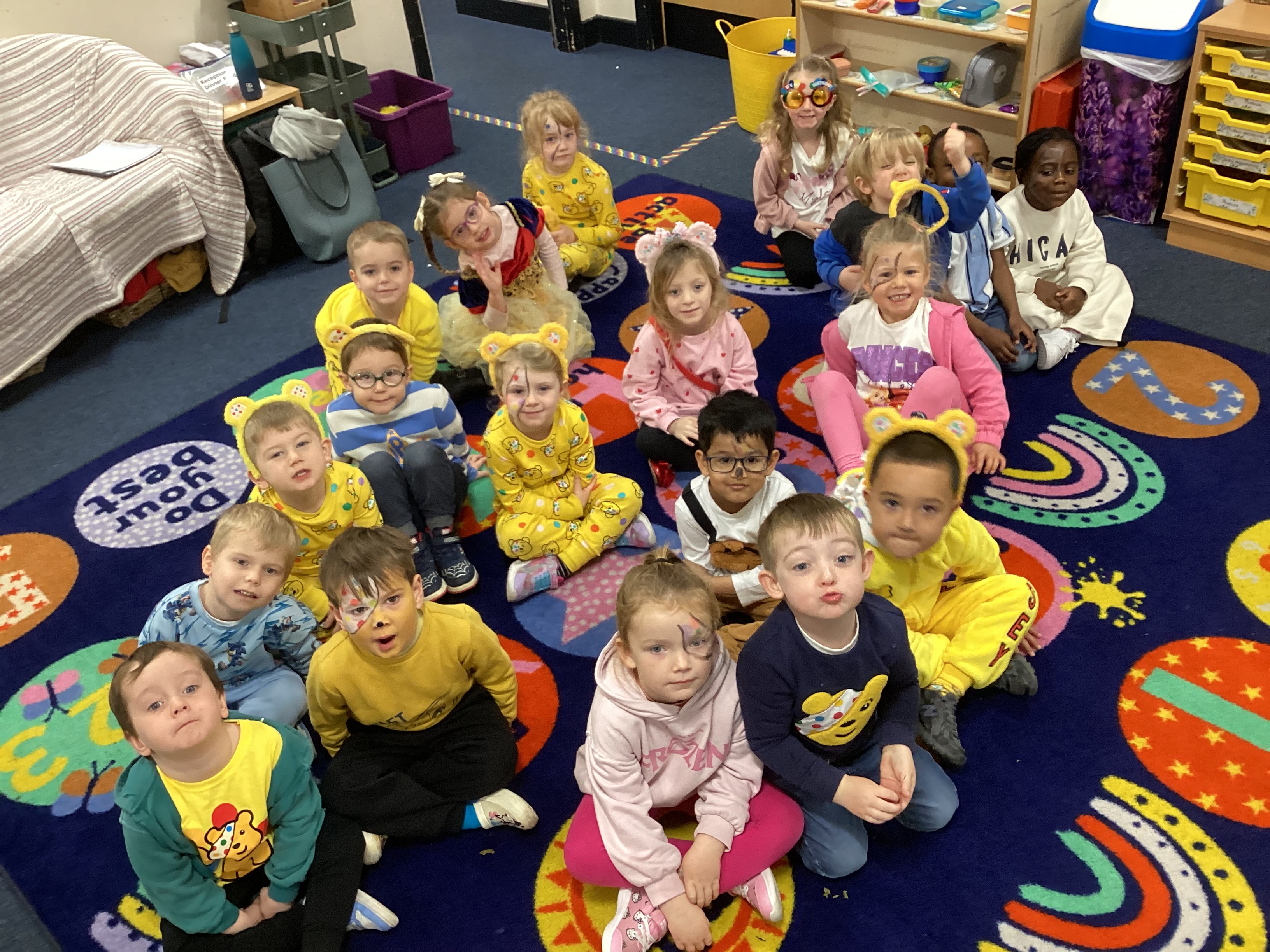 This week has been very busy. We had a lovely morning supporting Children in Need- the children looked fabulous in their dress-down clothes. The afternoon was spent with PC Lou. She talked to us about how the police help people. We all got a chance to sit in her police car and hear the siren.