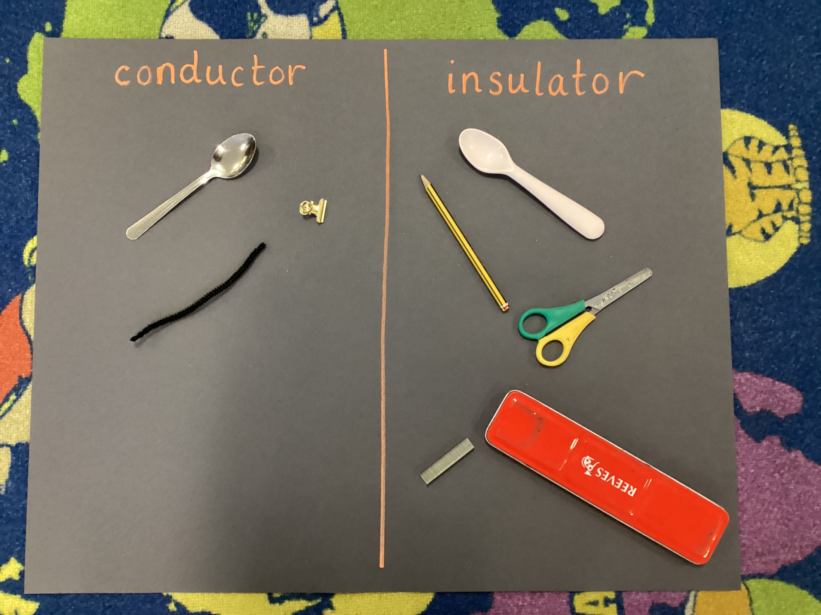 In science, we have completed our physics topic this week by investigating electrical conductors and insulators. We tested different materials and made predictions before recording our findings. We also explored how switches work in an electrical circuit and how they affect the flow of electricity.