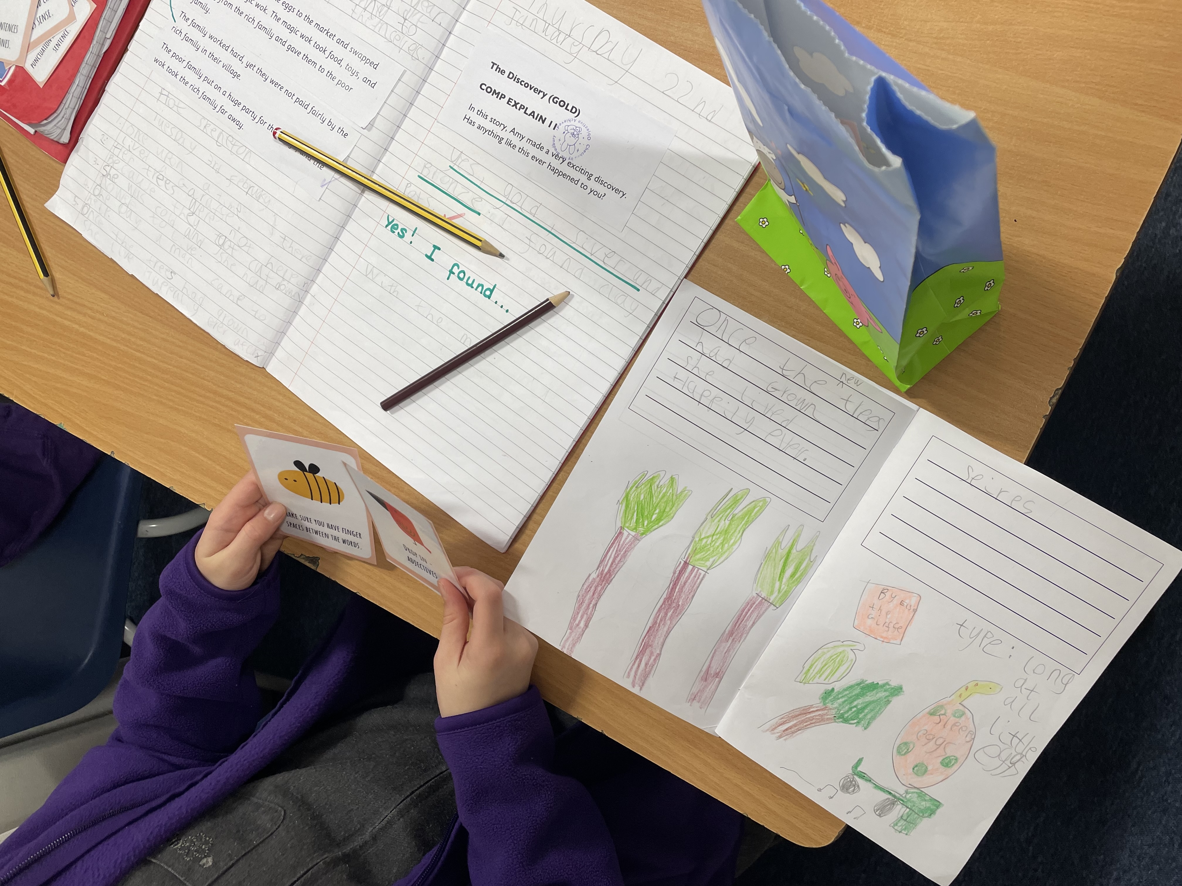 This week, in literacy, we used a boxing‑up grid to plan our own invented rags‑to‑riches stories — and every single one was different! We then built the story skeleton by writing one simple, perfectly formed sentence for each part of the story. Once the structure was secure, we went back to add the story flesh to the story bones. We improved our writing by including Power of 3 sentences, adverbs, and powerful verbs to build exciting action, as well as compound sentences to help our stories flow smoothly. We used the editing party bags to polish our stories.