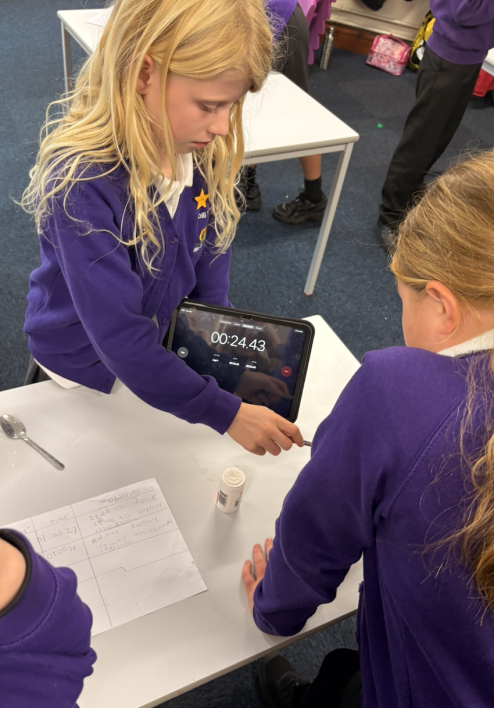 We conducted a science experiment on solubility this week! In our science groups we had the choice of which solvent and solute to choose in order to discover which elements affect solubility.