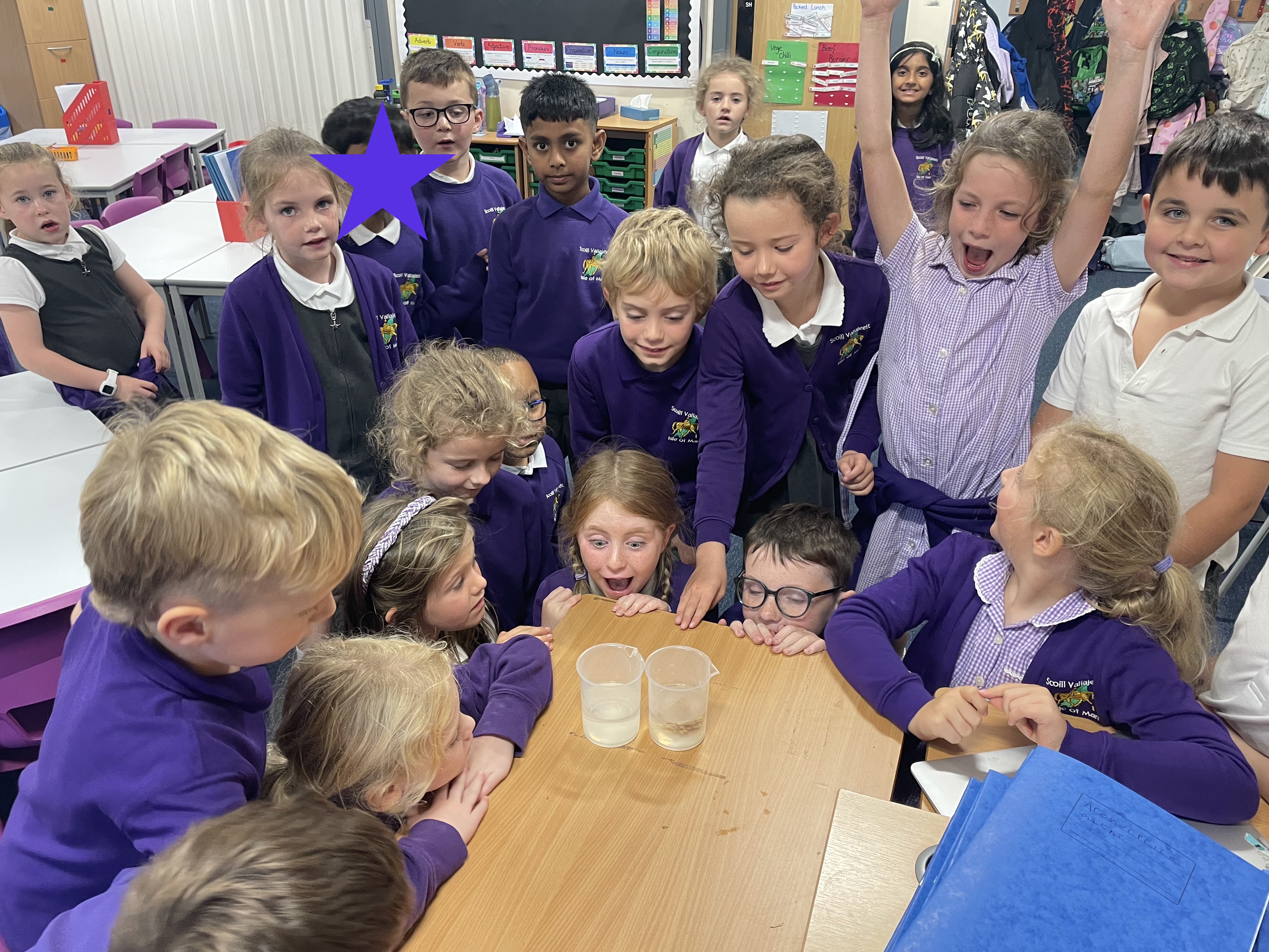 In science, we are learning all about nutrition, digestion and healthy living. We filled 2 small jugs with lukewarm water and created a visual representation of the stomach breaking down food into energy. We discovered that sugar dissolved more quickly than the flapjack which helps us to remember that sugary foods are broken down by our bodies much faster than more complex foods like flapjacks, giving us a quick burst of energy but not keeping us full for very long.